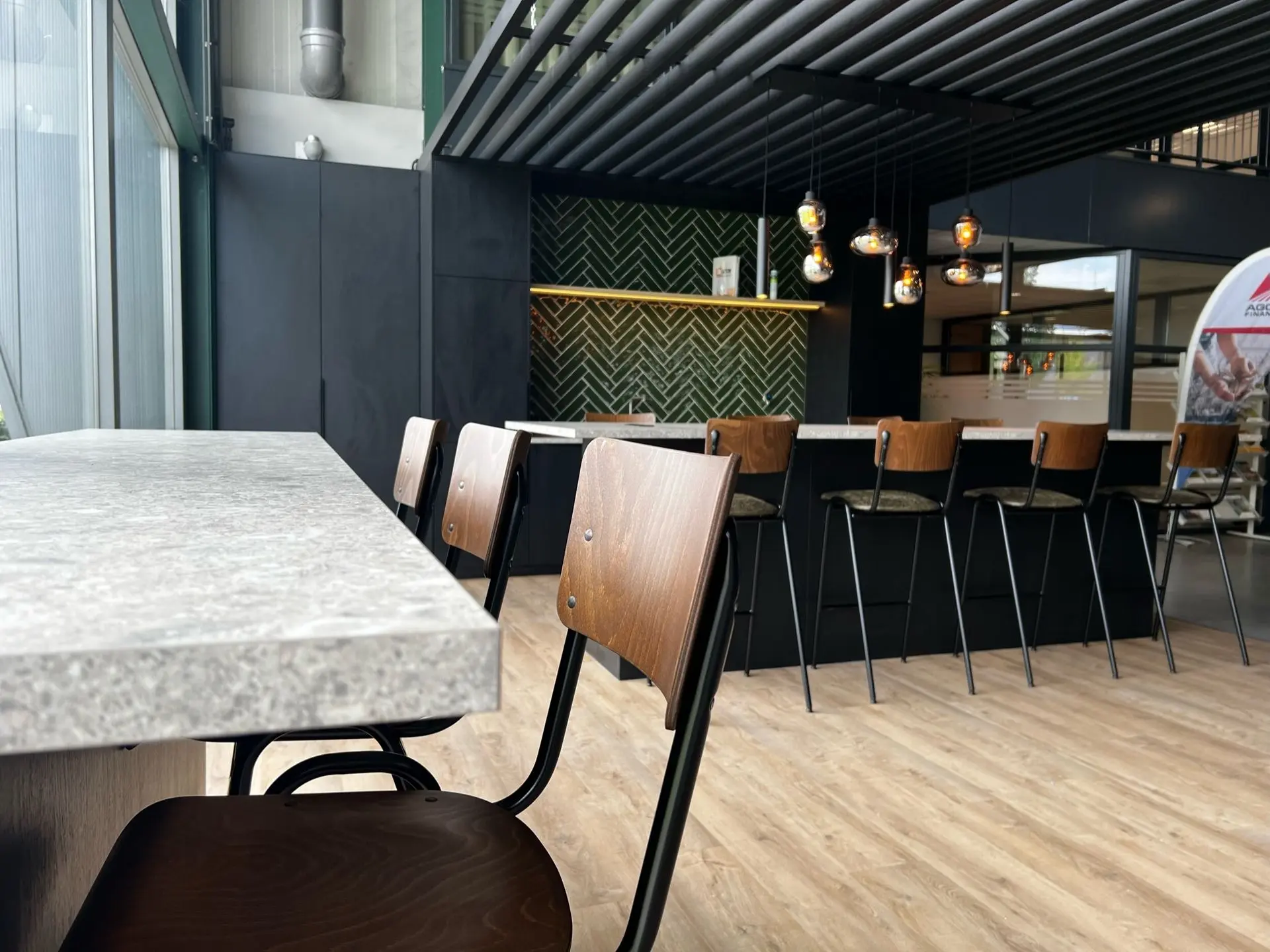 V Voor Abemec mochten we een compleet interieurproject realiseren. Abemec is een bekende speler in de agrarische sector met vestigingen door heel Nederland. Een organisatie waar vakmanschap en praktisch werken hand in hand gaan. De inrichting moest daarbij functioneel zijn, maar ook prettig om in te werken. We leverden en monteerden het maatwerkmeubilair voor verschillende ruimtes. Daarnaast hebben we ook de keukens verzorgd. Ook de raambekleding is volledig door ons geleverd en gemonteerd. Alles is afgestemd op het dagelijkse gebruik en de uitstraling van Abemec. Door alles in eigen beheer uit te voeren konden we snel schakelen. Het resultaat is een complete en rustige werkomgeving die past bij het bedrijf.