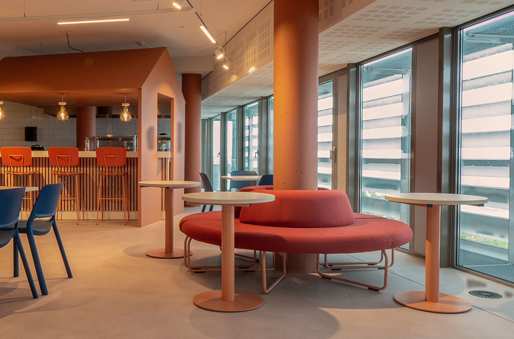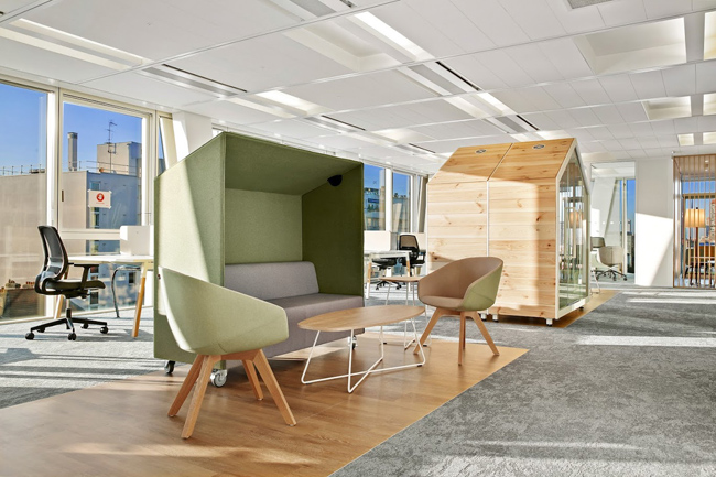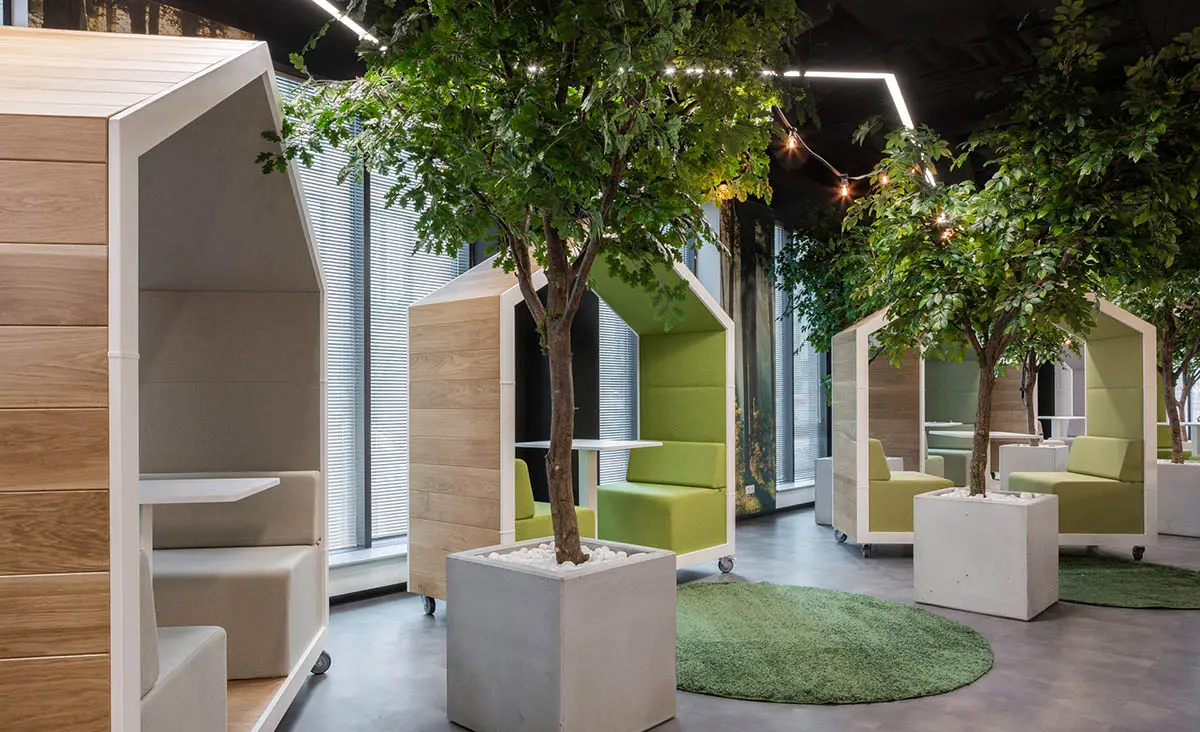 - Sterke akoestische oplossingen: de pods en schermen helpen geluid dempen en rust creëren