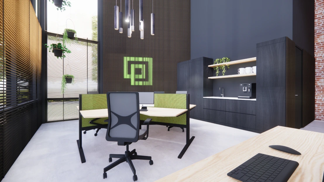 We werken met slimme software waarmee jij door je toekomstige kantoor kunt ‘wandelen’ alsof het al af is. Zo zie je meteen wat werkt qua indeling, kleuren, akoestiek en lichtinval. En het mooie? We passen het ontwerp net zo lang aan tot het helemaal klopt met jouw wensen, stijl en budget.